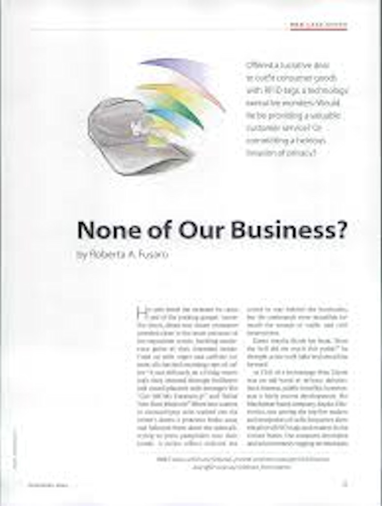 - Guenther, O. and Spiekermann, S. (2005) RFID and Perceived Control - The Consumer's View, Communications of the ACM 48(9), 73-76.
